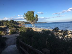 Com a contrapunt a tot això, revivia les sensacions agradables experimentades durant la jornada: els colors del cel i de la mar. La claror d’un sol brillant. La tranquil·litat dels espais buits: platges buides, muntanyes d’oliveres, ametllers i garrofers solitaris, cases tancades i deshabitades. Molta tranquil·litat. Poc soroll… i la companyia d’un solitari feliç que gràcies a prendre distància de la mesquinesa que tot ho impregna, conserva una excel·lent salut mental, que de tota manera ja era bona en origen.