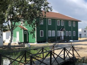 Arribo a la Casa de Fusta, i em sembla haver-me traslladat al Canadà. Un rètol allà situat explica als visitants que va ser construïda el 1926 per tres senyors de Barcelona atrets i interessats per les aus aquàtiques. Per caçar-les! Tots els components de la casa, gairebé tots
