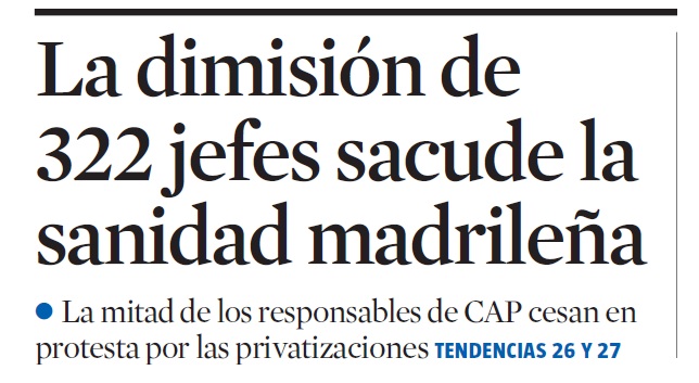 Recomano la lectura del reportatge que publica el diari “La Vanguardia” sobre el conflicte a la Comunitat de Madrid amb motiu del canvi en el model de gestió dels hospitals i centres de salut que planteja el Govern d’aquesta Comunitat. En aquest context es presenta la iniciativa com una mesura que permetrà disminuir substancialment el cost de la prestació sanitària, però la meva opinió és, tal i com es recull en el reportatge, que no necessàriament s’aconseguirà. El nou model podrà ser més àgil i flexible, però no necessàriament més econòmic. En qualsevol cas, la clau no és privat o no privat com a regim jurídic, sinó la gestió empresarial.