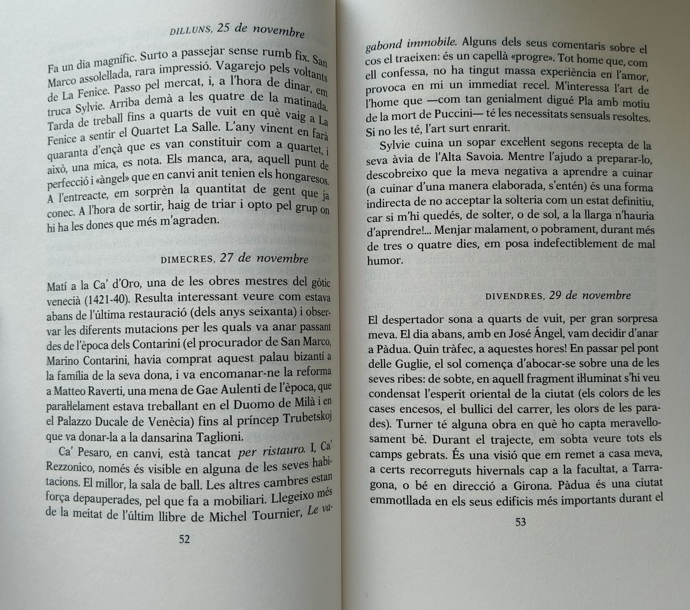 Sobre la barreja: bé, si llegiu dietaris veureu que, en la major part d’ells —com he fet en aquestes Cròniques japoneses—, els relats estan separats per dates, numerats, o bé per espais amples amb o sense ratlles. Senyals que indiquen que cadascun dels fragments té vida pròpia. O sí, però no. És a dir, a mesura que es llegeixen tenen sentit per si mateixos, però al final pot aparèixer un sentit global (no és obligatori). Tot això per dir que no cal llegir les sis, set, o les pàgines que siguin, seguides.