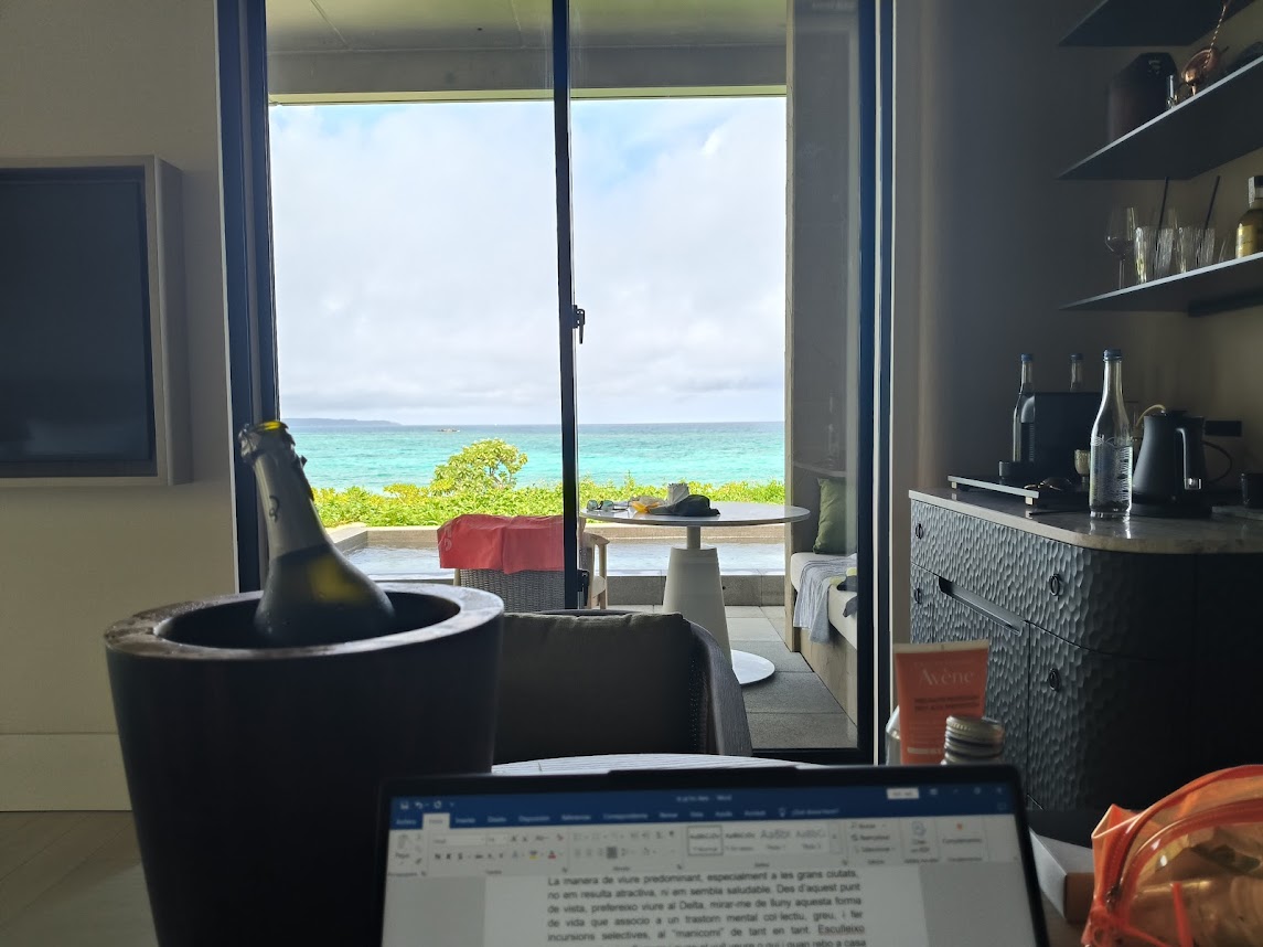He tingut la sort d’estar en ressorts vacacionals a Martinica, Saint Marteen, Mauritius, Tahití, Morea, Bora-Bora, Fiji, Song Saa Island (Cambodja)… i d’altres no insulars: Costa Rica, Nicaragua, Dominicana, Brasil, Veneçuela, Turquia, Zimbabwe… Hi he anat per meetings internacionals i hi he allargat l’estada uns dies, o bé —com ara al Japó— com a tancament de viatges de turisme urbà. Després de caminar 30.000 passes diàries per Tòquio, Kyoto o Osaka, “apalancar-se” 3 o 4 dies en una illa, a 30 metres de l’oceà Pacífic, es fa atractiu. Però… què hi ha a fora d’aquest paradís? Aquesta és la qüestió. Aquesta és la gran qüestió.