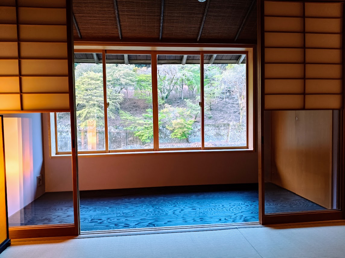 M’encanten els terres de tatami i la sensació agradable de caminar-hi descalç. Si hi afegeixo els menjadors privats i els onsen (banys termals), em manquen paraules per intentar traslladar-vos la placidesa i l’autenticitat que em provoca aquest lloc. M’hi passaria hores i dies ben a gust: escrivint, llegint, badant, meditant. Ara dins de l’onsen, ara fora… Ara dormint damunt del matalàs sobre el tatami, embolcallat amb la funda nòrdica. Sense pressa. En pau.