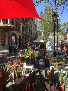 Surto a comprar llibres i veig una parada de roses d’uns estudiants de Medicina. N’hi ha dos que estan tan pendents l’un de l’altre que ni s’adonen que hi ha gent intentant comprar, però no gosen trencar l’idil·li primaveral que fan evident: “T’estimo tant que no tinc paraules per expressar-ho!”, sembla dir-li ella mentre ell la mira embadalit.