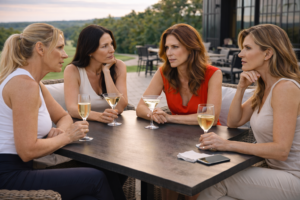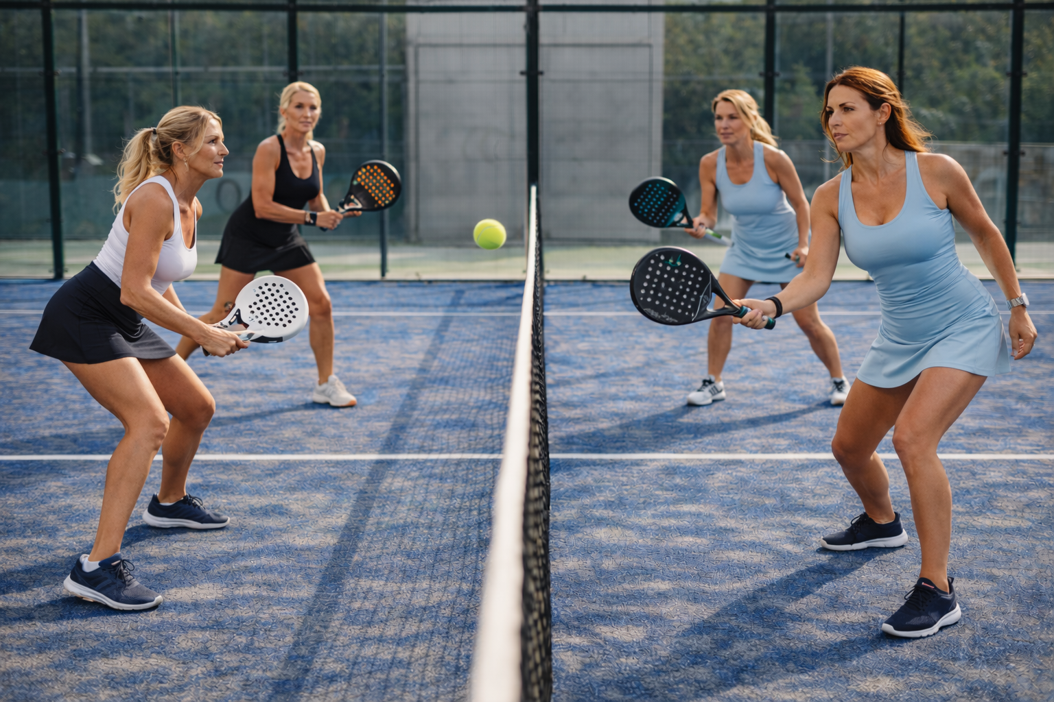 Després del partit, amb la suor encara a la pell i la marca de la cinta de la pala al canell, les quatre s’asseuen a la terrassa del club. La fusta de les taules té aquella rugositat gastada de lloc de pas, i els gots, quan hi toquen, fan un so sec que posa ordre al cansament. La Clara deixa la pala al costat de la cadira amb un cop intencionadament suau, que ve a dir “prou per avui”. L’Helena es recull els cabells amb una goma que duu al canell com qui conserva una eina de supervivència. La Sònia, aigües a banda, demana dues cerveses i dues copes de vi blanc, no perquè siguin grans bevedores, sinó perquè el cos, després de l’esforç, agraeix una petita cerimònia. L’Ariadna s’asseu una mica més enrere. Parla poc. Escolta i, de moment, calla.