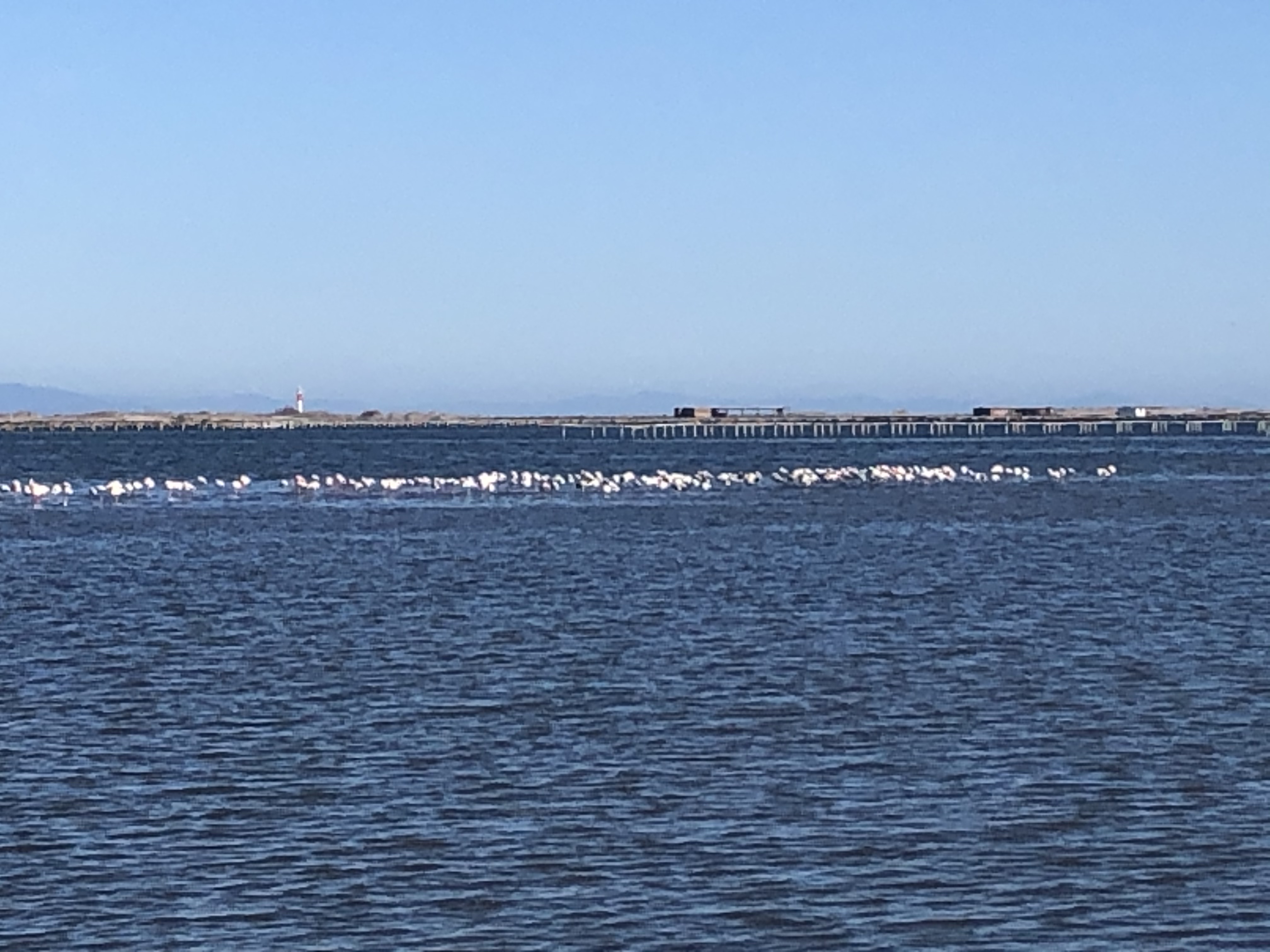 Em vaig dedicar a cercar nous camins. Durant bona estona vaig vorejar el mar i a banda de les gavines, a mesura que m’endinsava per zones poc concorregudes (almenys en aquesta època de l’any) vaig veure, a banda de molts ocells i aus que estic acostumat a veure, però en desconec la denominació, bernats pescaires, ànecs i una gran colònia de flamencs als que vaig dedicar força estona a contemplar-los. Quina sensació de pau i de llibertat!