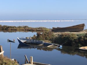 El dia és preciós, assolellat, el cel és peculiarment blau. El vent que va bufar prou contundentment divendres i dissabte, s’ha esvaït. Malgrat ser desembre, la temperatura és suau i resulta agradable gaudir del paisatge anant amb bicicleta. De Lo Goleró, bordejant la costa nord del Delta, després de rodejar la Bassa de les Olles, passo la Gola de la Bassa Roja. M’aturo en uns miradors de fusta prou conservats i segueixo cap al Port d’Illa de Mar. Torno a fer una parada per observar una població nombrosa de flamencs que estan -fa de mal dir- a 400-500 metres de la costa. Continuo, passo el cementiri de barques i tombo cap a l’interior per agafar la carretera que em portarà a la Platja de la Marquesa i a l’inici de la Platja del Fangar. Preciós!