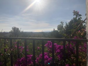 “Les flors de la buguenvíl·lia s’han anat assecant, però el conjunt encara conserva el color preciós característic d’aquesta planta. La temperatura és estiuenca de dia. Cap al tard ja no tant i la llum és de tardor. El dia és preciós, el cel d’un blau intens es diferencia perfectament a l’horitzó del mar, d’un blau igual d’intens i nítid que el del cel, però més fort, tot i ser clar. Entre el mar i la buguenvíl·lia, veig infinitat de tons de verd: el verd platejat de les oliveres, el verd groguenc de les palmeres, el verd més fosc d’un albercoquer, encara més fosc el de la figuera, i els pins tenen dues tonalitats de verd, clar a la part que hi toca el sol i fosc a l’ombra. Això pel que fa als arbres que tinc més a l’abast de la vista. A mesura que la mirada s’aproxima al mar, la barreja de verds fa que es confonguin en una mena de catifa assolellada espectacular.
