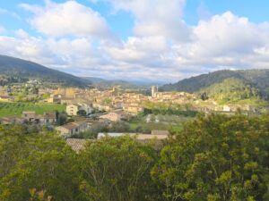 Vaig agafar el cotxe i vaig començar a pujar carretera amunt, amb la sensació que conduir, a banda de permetre’m desplaçar-me, propiciava la contemplació de la bellesa. La carretera s’enfilava i, en un punt determinat, se m’obrí a baix una vista preciosa, bucòlica, gairebé idíl·lica de Lagrasse. Vaig parar. Hi havia en aquella perspectiva elevada una veritat que la nit m’havia negat. El poble, vist des de dalt i sota aquella llum del matí, semblava reconciliat amb ell mateix. Ja no era la massa tancada, humida i recelosa de la vigília, sinó una petita forma d’ordre humà posada en el paisatge amb una elegància antiga. Vaig parar per fer alguna fotografia, però sobretot per admirar el que es veia.