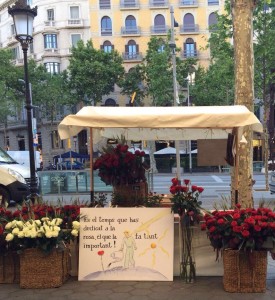 Cuando entro me doy cuenta de que Sant Jordi ha comenzado el día antes, es decir, ayer viernes. De hecho, al mediodía ya vi una parada de rosas y como iba a casa, compré, ya con la idea de que el día de Sant Jordi no saldría a la calle.