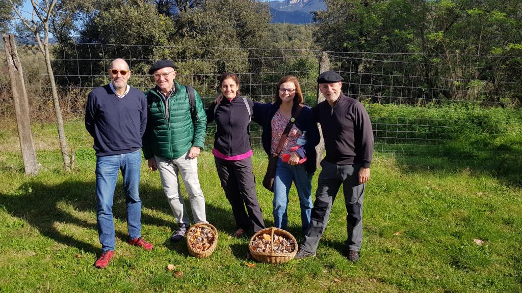 Anna nos demostró que de todos nosotros, sin lugar a dudas, era la mejor recogedora de setas. ¡Estaba como poseída! Las veía de lejos y salía disparada abalanzándose sobre los hongos, como temiendo que inesperadamente pudiera aparecer un intruso escondido detrás de algún árbol y se le adelantara y lo capturara antes. Joan no se quedó atrás, y la otra Anna y Albert hicieron un buen papel. Nina y yo, simplemente paseábamos y contemplábamos cómo los demás estaban concentrados y absortos en la “caza” de la seta. ¡Mi ineptitud absoluta en tal práctica se hizo patente cuando Anna me tuvo que frenar con un grito cuando ya estaba a punto de pisar un níscalo!