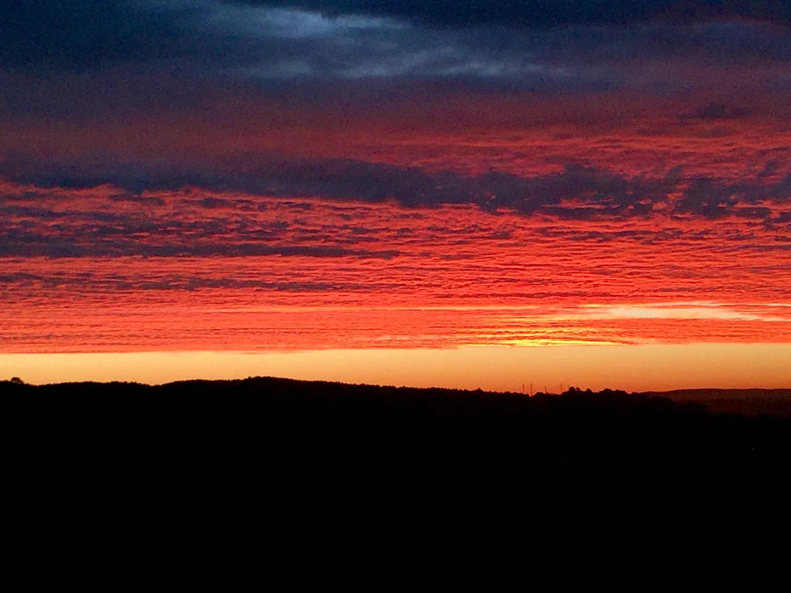 El sábado el canto del gallo me despertó. Al cabo de un rato corrí la cortina y el espectáculo de la salida del sol en aquel bellísimo escenario de la Garrotxa, me fascinó. El amarillo incipiente en oriente, se volvía naranja y posteriormente rojizo a medida que los rayos del astro topaban con las nubes que, ahora ya de retirada, habían traído tanta agua el día antes. ¡Qué cantidad de agua ha caído este otoño!